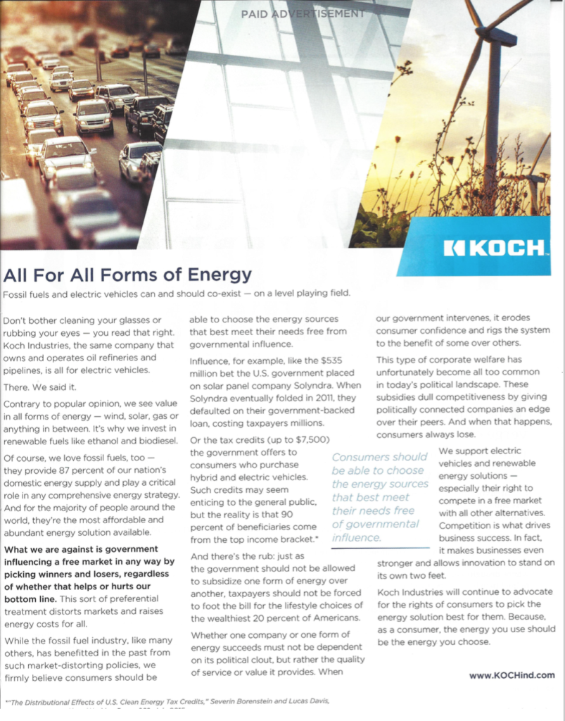 Koch Industries Pretends to Be “All For Electric Cars”…With a Catch