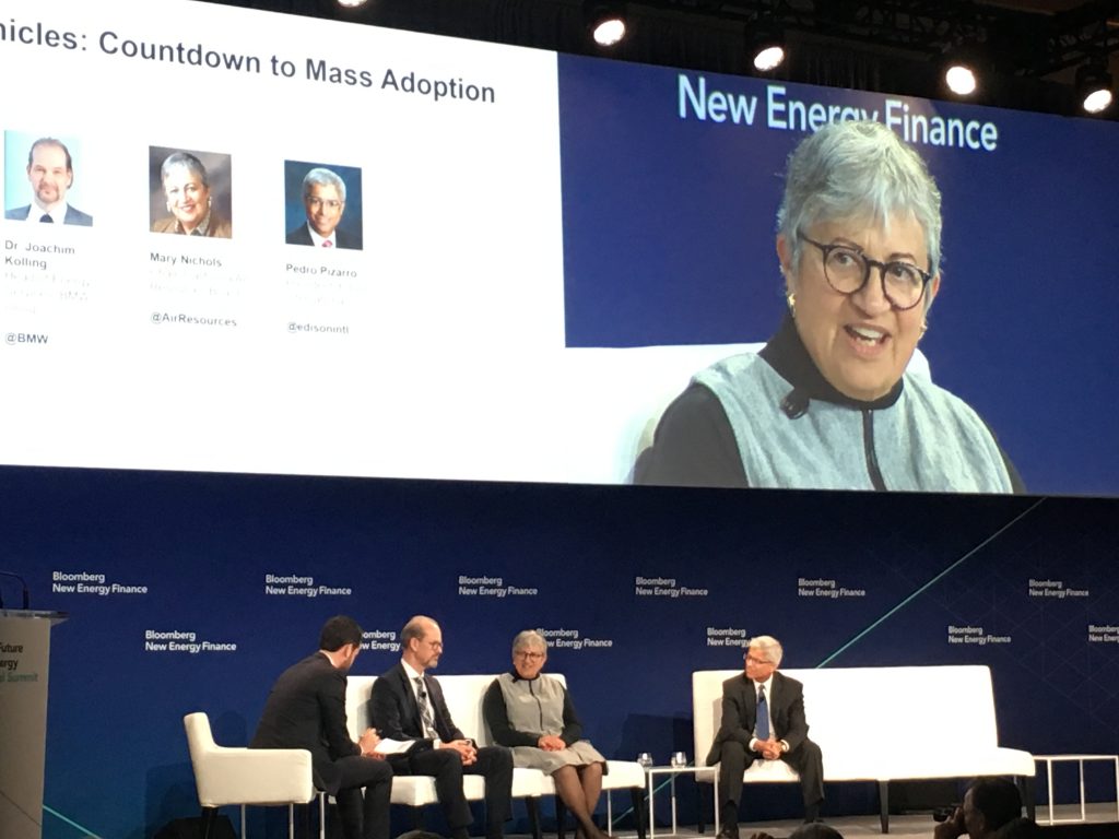Mary Nichols (second from right) speaking on a panel about electric vehicles at the BNEF Future of Energy Summit. Credit: Ben Jervey